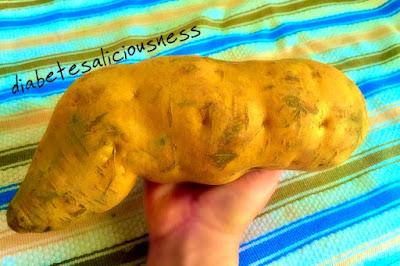 | I went to by my local Farmers Market early this morning, stopped at a stand and saw this ginormous sweet potato and was like: |
